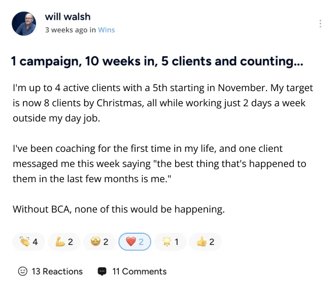 Hit his 1 year goal within 3 months of starting his business, having never coached before.