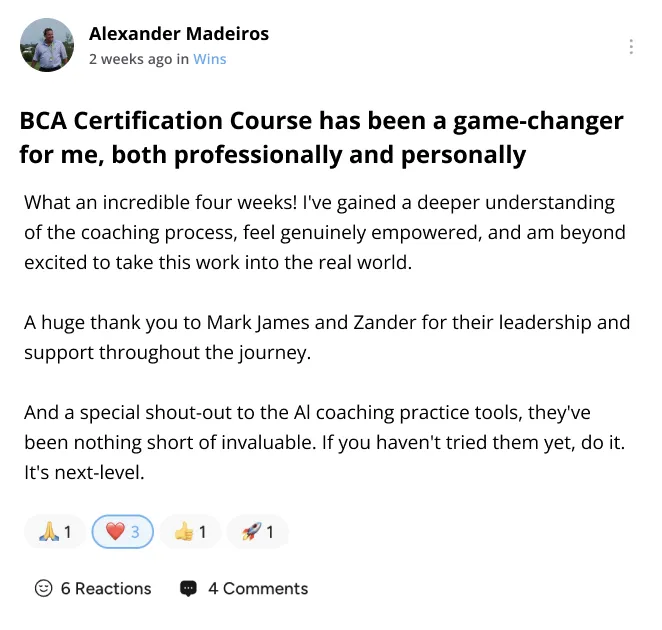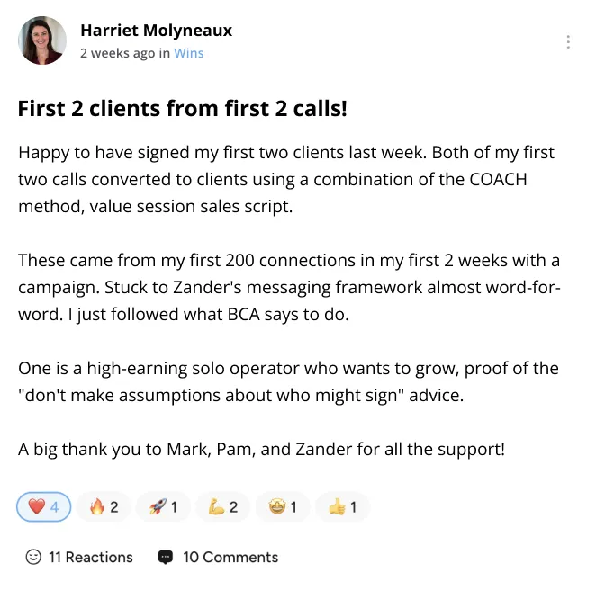 This is the smart way to transition from corporate to coaching. Not reckless. Strategic. And that's why it produces stories like these...