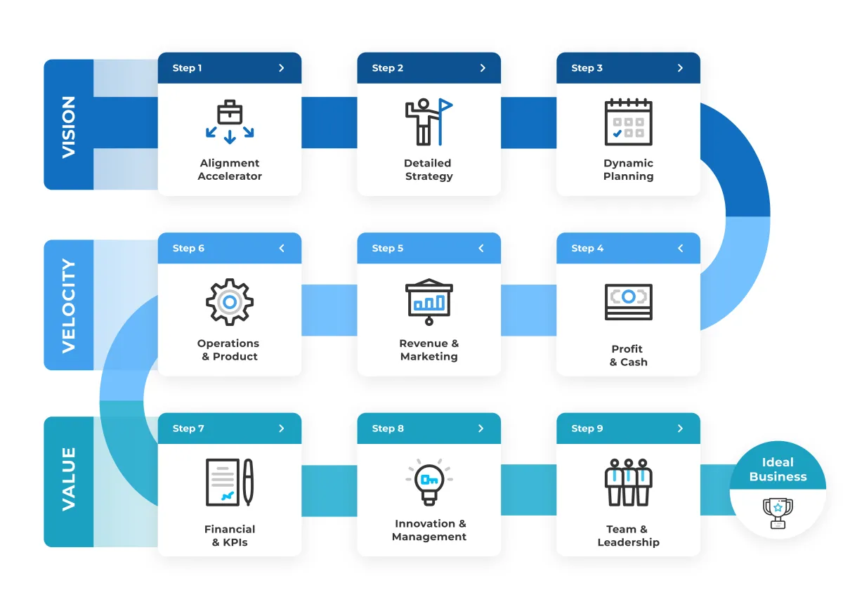 Complete PROFIT System with 5 levels, 3 pillars, and 9 steps