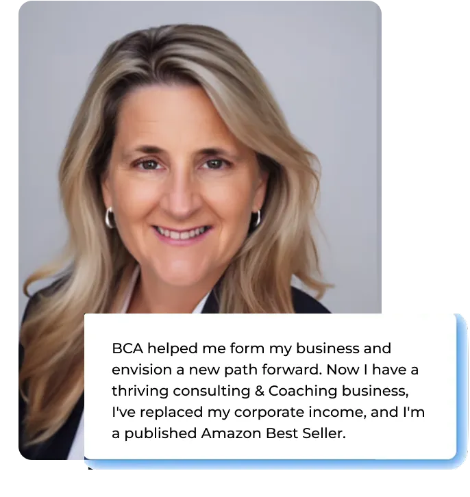 A former VP of Marketing at a Life Sciences tech company, Heidi left corporate just months before major layoffs hit. She joined BCA to build a consulting and coaching business from scratch.