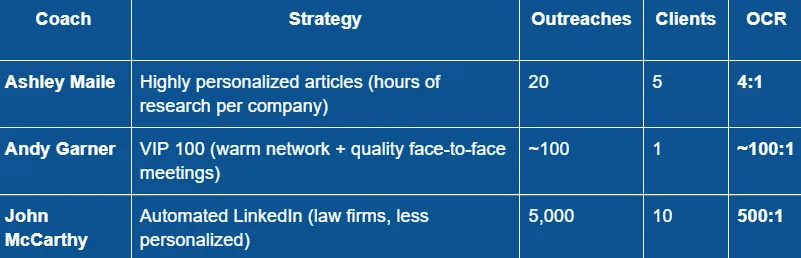 All three got clients. Completely different strategies. Completely different OCRs.